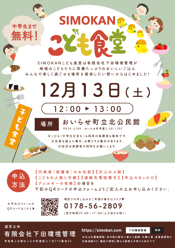 地域貢献の一環として、下記の通りこども食堂を開催します。